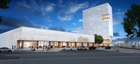 Door de sterke groei van de Hogeschool Gent op de Campus Schoonmeersen in Gent, ontstond de behoefte aan een nieuw gebouw voor de sociaal agogische studies, een centraal studentenplein en een sporthal. Studio Leon Thier werd door de Vlaams Bouwmeester geselecteerd om deel te nemen aan de Europese aanbesteding voor de architectenopdracht. Campus Schoonmeersen bestaat door een ongestuurde groei uit een nog weinig gestructureerde opzet. Het stedenbouwkundig structuurontwerp bood ons inziens niet de kansen die er lagen voor een prachtige Campus. Samen met MTD landschapsarchitecten verbeterden en verhelderden wij de structuur en legden het studentenplein op het knooppunt van looplijnen, zodat het een vanzelfsprekend ontmoetingspunt wordt. Het concept voor het studentenplein is een simpele en doeltreffende ruil tussen de bestaande centrale collegezaal die de gewenste doorgaande route blokkeert en de excentrisch gelegen saaie kantine. Het centrale gebouw wordt in ons concept het overdekte ontmoetingsplein van de Campus, met grote taatsdeuren naar het buitenplein op de zon. Het nieuwe gebouw voor sociaal-agogische wetenschappen (‘SOAG’) wordt in ons plan gesitueerd aan een van beide entreeassen van de Campus. Centraal beeldmerk van dit gebouw is een verdiepinghoge tribunetrap, die fungeert als pauzeruimte en voor bijeenkomsten. |
